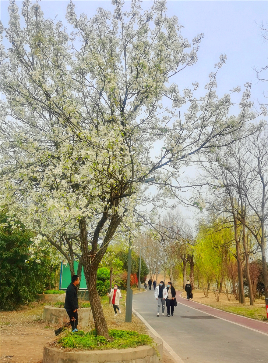 3月26日,周口市天氣晴好,植物園內(nèi)岸柳青青、鶯飛草長(zhǎng)。園內(nèi)的梨花正是盛開時(shí),不少市民在此駐足觀賞拍照。②8