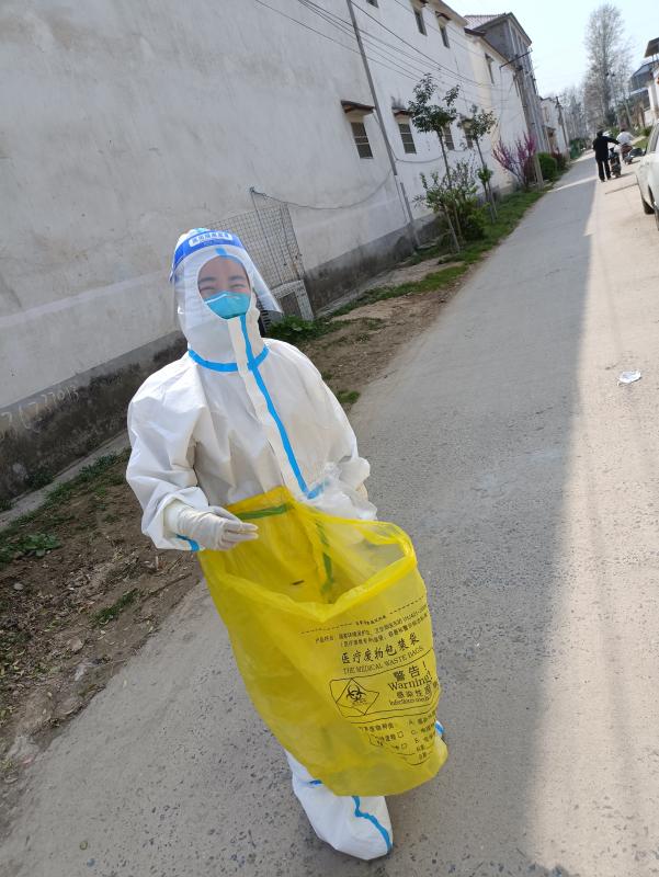 許夢蝶她們去的村分散較廣,從凌晨開始一個村挨一個村地跑下去,汗水很快濕透防護服,一般到下午2點,前來采樣的村民會逐漸變少,但是饑腸轆轆的她卻不能就餐,因為偶爾還會有村民過來采樣,如果脫下再穿防護服肯定會耽擱村民的時間,“我們本來就是為人民服務的,我們等等無所謂,不能讓老百姓來等我們”,許夢蝶當時這樣想著,然后婉拒了工作人員的就餐邀請,等沒有村民來采樣了再休息。她們吃完飯與大部隊集合的路上,突然隊長接到鄉(xiāng)長的電話說人手不夠讓回去采集封控村,她們立刻掉頭回去,沒有任何怨言,沒有任何要求。到了以后工作人員通知說這個村500多人要入戶采集,她們立即穿上防護服就開始了工作,和村干部及志愿者相互配合,拿著未集中核酸采樣的群眾名單,不停穿梭在村里的大街小巷、房前屋后、床邊炕頭進行現場核酸采樣。臨走時叮囑群眾日常防護不能大意,勤洗手、勤消毒、戴口罩,卻忘記了我們自己已經濕透的衣服還有灌鉛似的雙腿……
