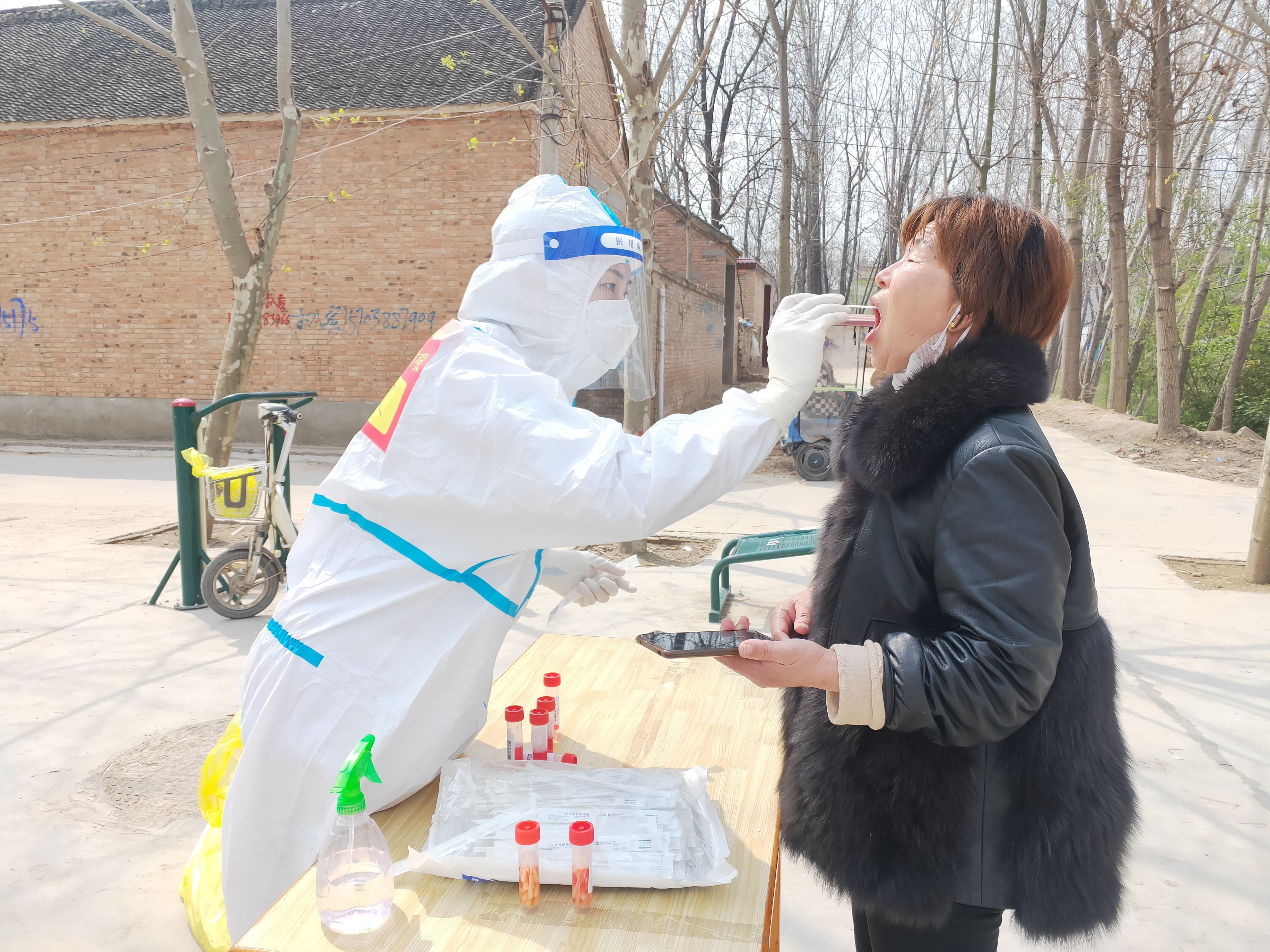 王文文和同事們于當日早7點到達太康廣場進行培訓。培訓結束后,在對接人的引領下,王文文帶領分隊46人前往太康縣張集鎮(zhèn)開展支援工作,主要負責張集鎮(zhèn)15個自然村,每日對近2萬名群眾進行核酸采集,他們分為15個組,一組負責一個采集點。第一天大家都沒有經(jīng)驗,工作中,王文文不時接到其他組隊員的咨詢電話,王文文詳細地為他們一一解答,保證工作順利開展。