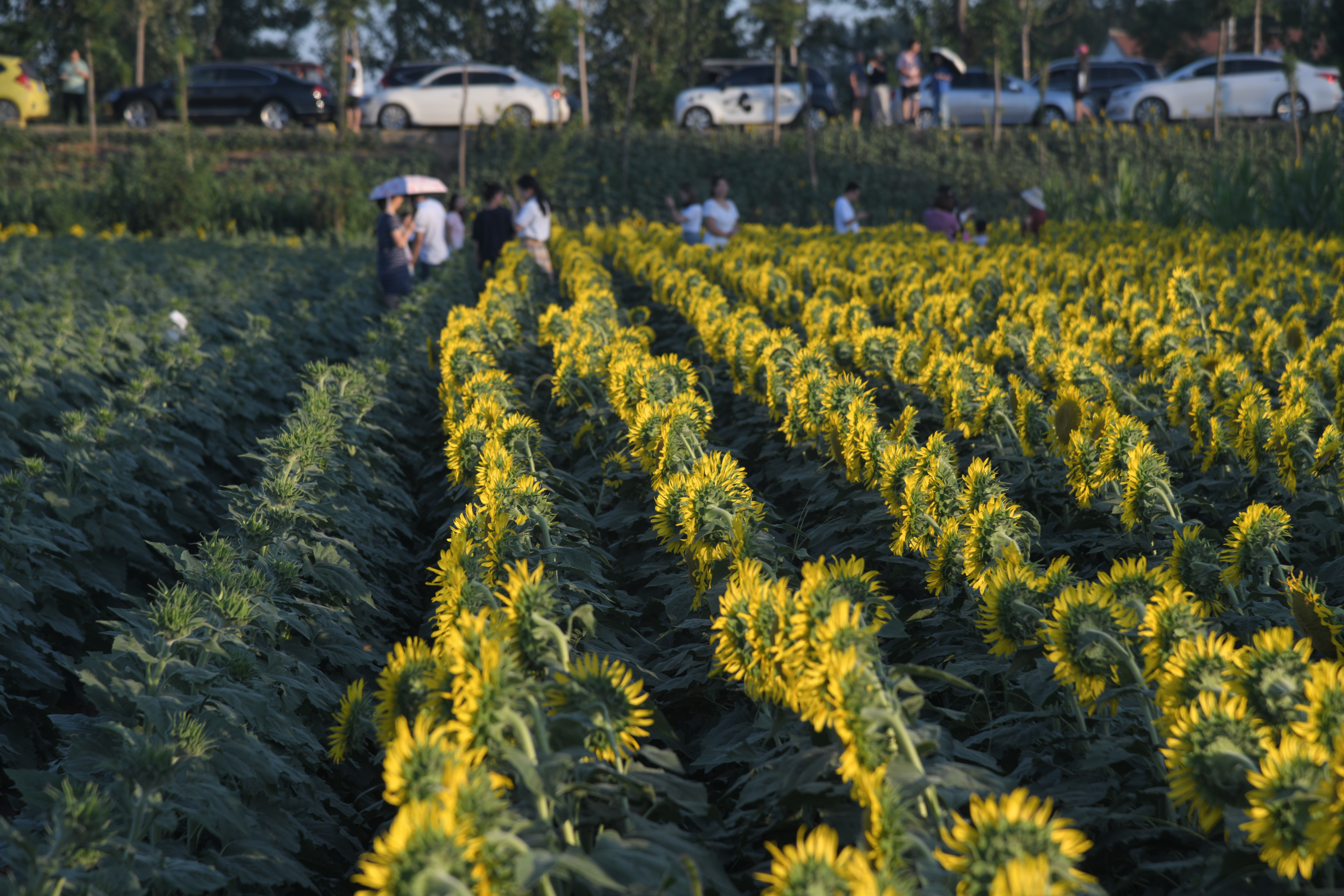近年來,我市以創(chuàng)建全國文明城市為引領,加快推進沙潁河生態(tài)經(jīng)濟帶全域文旅項目建設,提升沿河綠化景觀效果,給市民增加游玩好去處。圖為昨日市民在沙潁河南岸武盛大道東側(cè)的千畝向日葵花海游玩。記者付永奇攝 ②15