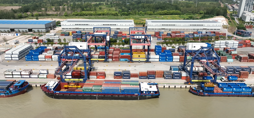 繁忙的淮安港。在自動化集裝箱碼頭,貨船頻繁進出,集裝箱不斷被起重機吊起、裝運,繁榮忙碌而又秩序井然。據(jù)了解,目前淮安全市碼頭岸線28公里,港區(qū)7個、碼頭116座、泊位389個,其中千噸以上泊位92個,年設(shè)計吞吐能力1.1億噸,其中集裝箱碼頭吞吐能力50萬標(biāo)箱。2021年,淮安被交通運輸部確定為“全國內(nèi)河主要港口”。運行內(nèi)河集裝箱航線14條,上游覆蓋河南周口、山東、湖北、安徽等地,下游通達銜接江蘇沿江沿海、上海等地。2021年完成集裝箱吞吐量31.07萬標(biāo)箱。