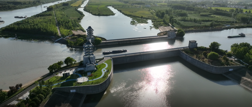 雄偉的“水上立交”?;春尤牒K来筮\河立交位于淮安楚州區(qū)南郊,建成于2003年,其作用是維持京杭運河水路航運,同時滿足淮河入海水道泄洪及渠北運西地區(qū)排澇要求。南北向的京杭大運河與東西向的淮河入海水道,這兩個相隔千年的新老工程在此交匯。據(jù)了解,十字水道長一百多米,上層航槽寬80米,是亞洲最大的水上立交工程。運河兩岸筑有混凝土堤壩,運河水面五米以下就是東西向的淮河。周口的船只行駛在京杭大運河,“水上立交”是必經(jīng)之路。