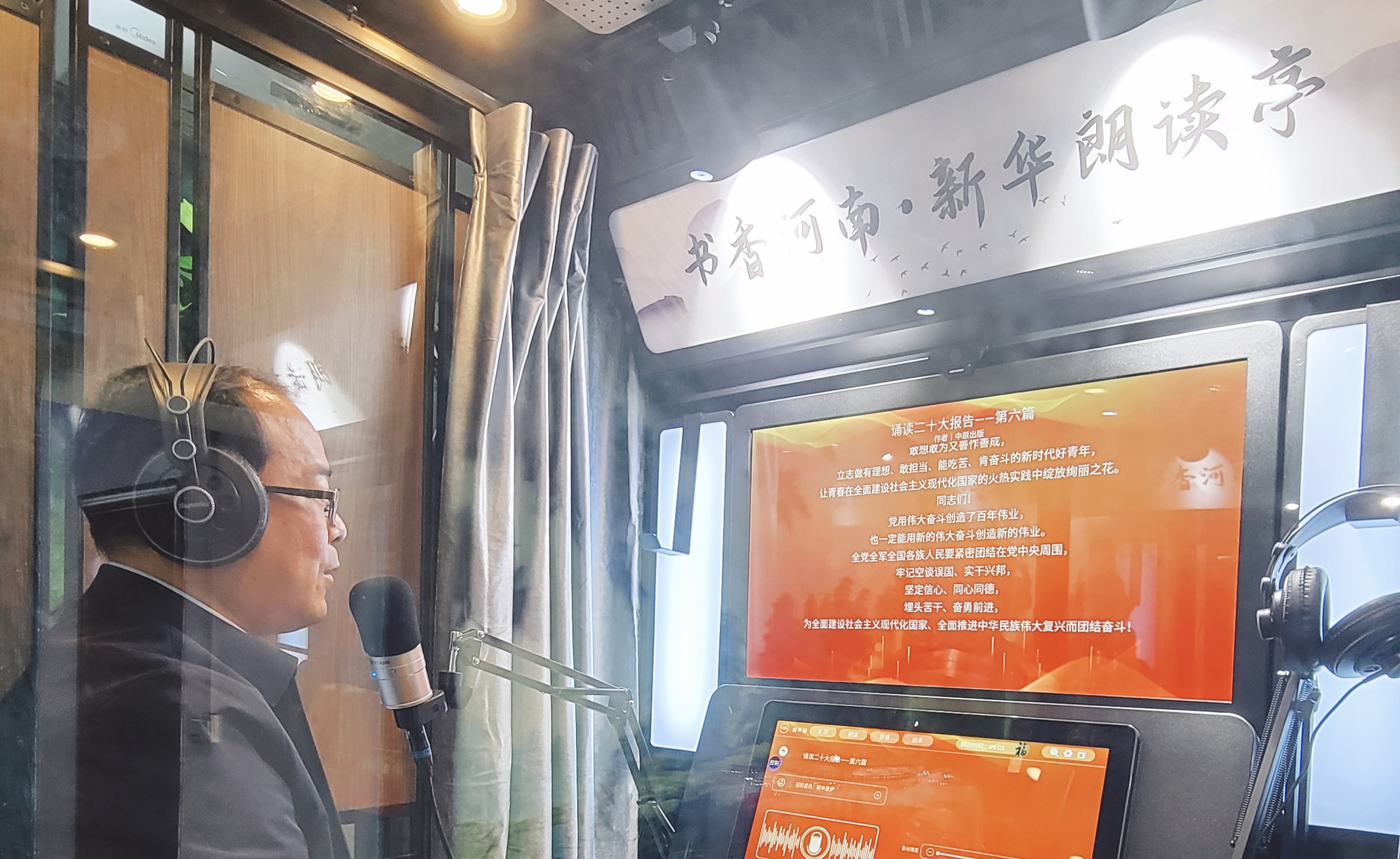據(jù)了解,此次誦讀活動時間為10月26日至11月30日?;顒又饕x了黨的二十大報告中十五個章節(jié)的部分文字作為誦讀素材,誦讀者進入朗讀亭后,只要打開手機進行微信登錄,就可以選擇喜歡的片段進行誦讀,最后還可以在結尾處針對誦讀內容發(fā)表切身感悟。