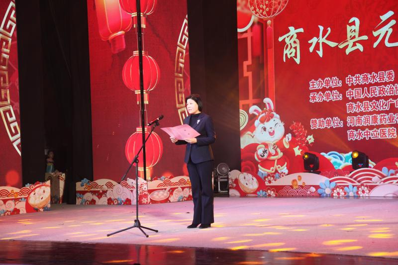 薛燕在致辭中代表縣委、縣人大、縣政府、縣政協(xié)向到場的父老鄉(xiāng)親、各位來賓表示歡迎,向刻苦排練的演藝團(tuán)隊(duì)致以親切的問候,并?,F(xiàn)場觀眾和全縣人民元宵節(jié)快樂!