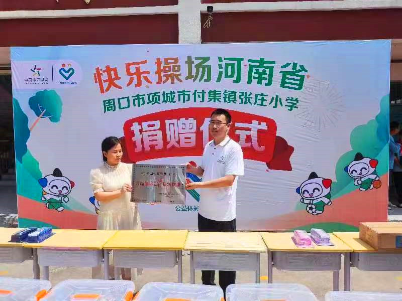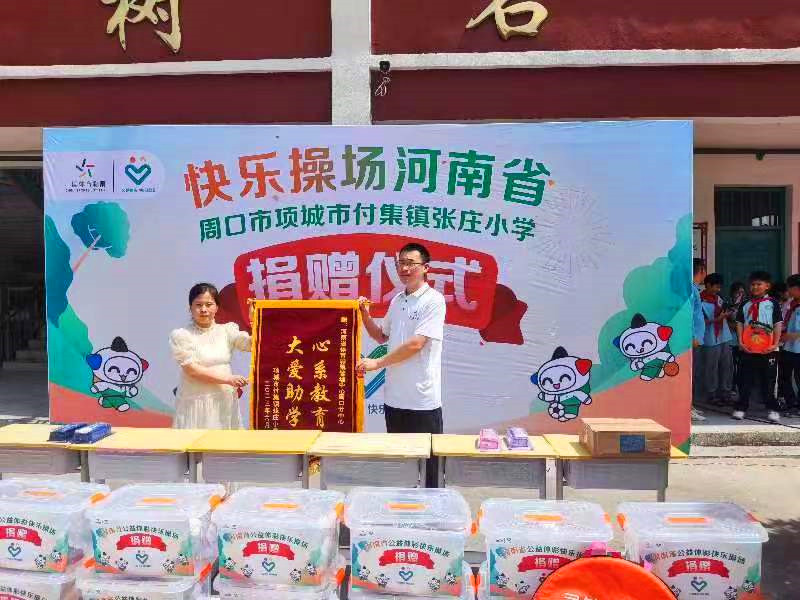 “公益體彩獻(xiàn)愛(ài)心,快樂(lè)操場(chǎng)進(jìn)校園”。6月20日,“公益體彩 快樂(lè)操場(chǎng)”走進(jìn)項(xiàng)城市付集鎮(zhèn)張莊小學(xué)開展公益捐贈(zèng)活動(dòng)。學(xué)校負(fù)責(zé)人將錦旗送到周口體彩分中心副主任孫海永手中,對(duì)該中心的善舉表達(dá)了衷心感謝。