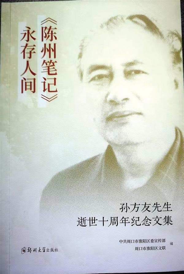 淮陽(yáng)區(qū)文聯(lián)主席傅世楨說(shuō),這本紀(jì)念文集既展現(xiàn)了孫方友先生苦心孤詣的文學(xué)成就,又輯錄了研究先生文學(xué)成就的文章,還收錄了文學(xué)藝術(shù)界追思先生的詩(shī)詞楹聯(lián)和深情文章,以及社會(huì)各界悼念活動(dòng)的新聞報(bào)道,將激勵(lì)淮陽(yáng)文藝工作者奮勇前行。