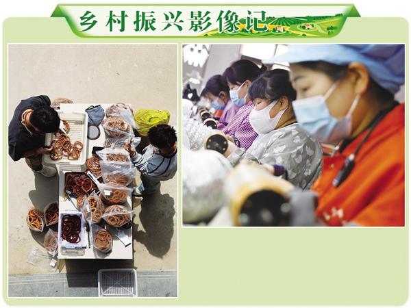 淮陽區(qū)葛店鄉(xiāng)回龍集村民依托傳統(tǒng)核桃雕刻技藝,創(chuàng)新打造“工廠+數(shù)字電商”融合發(fā)展模式,構(gòu)建起“原料加工—?jiǎng)?chuàng)意設(shè)計(jì)—雕刻生產(chǎn)—電商營銷”全鏈條文玩產(chǎn)業(yè)體系,成為鄉(xiāng)村振興背景下電商賦能的典型案例。圖為4月1日村民在車間加工文玩核桃(上)及通過直播平臺(tái)銷售產(chǎn)品(左)的場(chǎng)景。