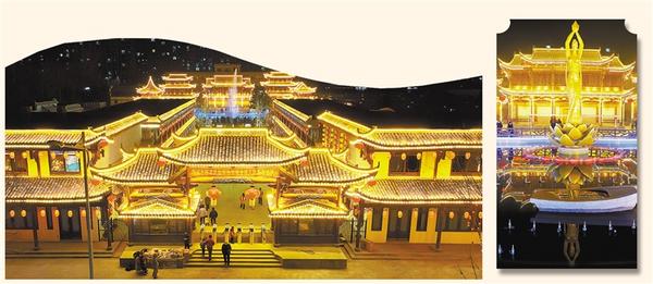 2月4日晚,項城市德高民俗博物館內(nèi)流光溢彩。古建筑的輪廓燈、高掛的大紅燈籠和燈光下的噴泉,彰顯出濃濃年味,吸引眾多游客前來觀賞。