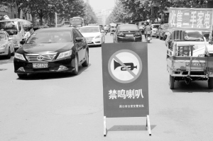 圖②我市各考點(diǎn)外設(shè)置了禁鳴喇叭警示牌。