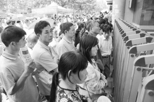 圖⑤考點(diǎn)大門外等候的家長翹首期盼。